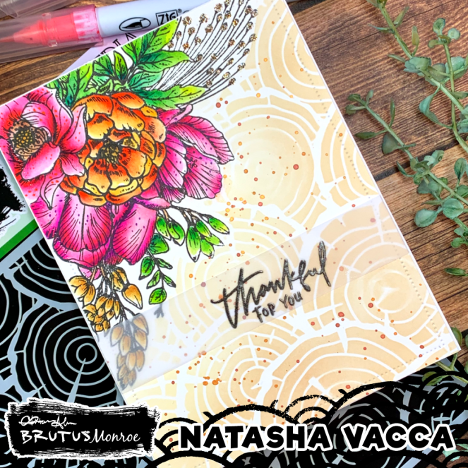 Hi everyone – How are you doing? I hope this post finds you doing well and healthy. I wanted to share a new card with you – I am thankful for you, your friendship, and your crafty support! It truly means so much to me! Coloring is truly an outlet for me and it relaxes me! My card today is using the stencil of the month from Brutus Monroe – Wood Slice. I love this stencil, it is full of many possibilities! If you love stencils, you may want to consider joining the stencil of the month club! How fun!