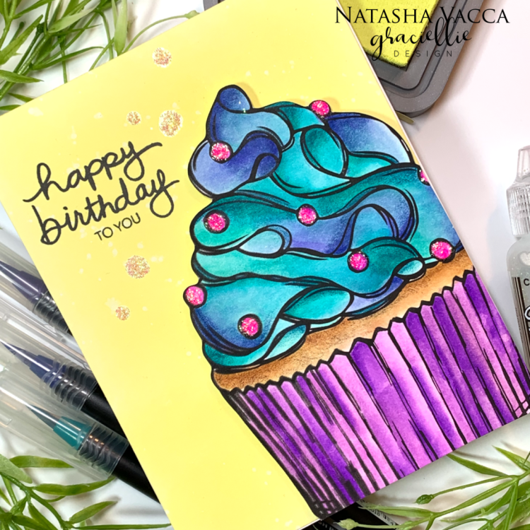 Happy Saturday everyone! Hope you had a nice week! I am back today using a new stamp from Alex Syberia. You can find her AMAZING blog here http://alexsyberia.com/ I encourage you to visit her blog and to see her beautiful work, as well as visit all the guest designers to see their work using her new release. Today I am using the Strawberry Cupcake image, you can find a direct link to her shop here https://www.etsy.com/shop/AlexSyberiaDesign I had so much fun creating with the beautiful Strawberry Cupcake stamp! This image is so fun, beautiful, and versatile! I wanted to create a large cupcake for my card, that was the focal point for my design!